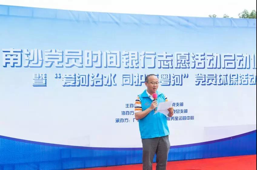 6月23日上午9点,南沙区委组织部党支部和区环保水务局党总支联合举办的“南沙党员时间银行”志愿活动启动仪式暨“爱河治水 同护南粤河”党员环保活动在南沙万达广场1号门外举行。区委组织部副部长、区“两新”组织党工委书记陈海华同志,区环保水务局总工程师周瑛同志,南沙区社区服务宝运营中心费振宇主任出席本次活动。