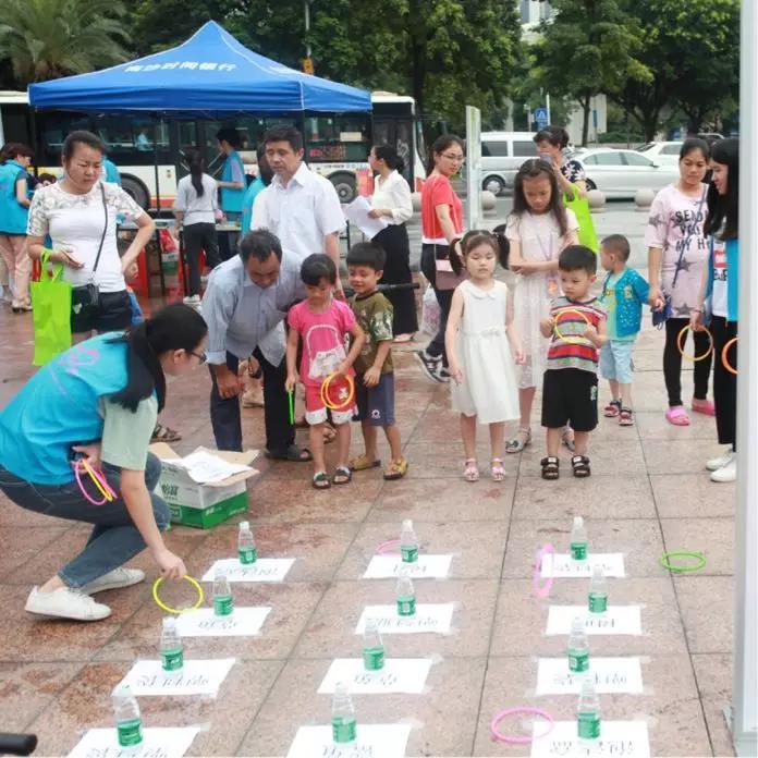 另一队党员志愿者引导居民参加环保嘉年华游戏环节。136组亲子家庭积极参与了趣味横生的环保小游戏。党员带领孩子和家长一起学环保,结合6个通关游戏,摒弃传统说教式的普及宣传方式,以寓教于乐的创新方式,将环保低碳的知识融入游戏中,传达到居民的心中。